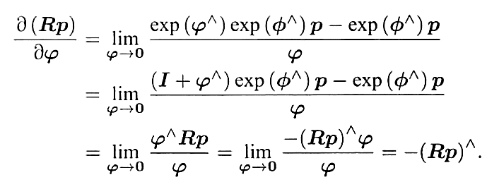 - 求导假设我们对一个空间点p进行了旋转,得到了Rp根据李代数定义求导