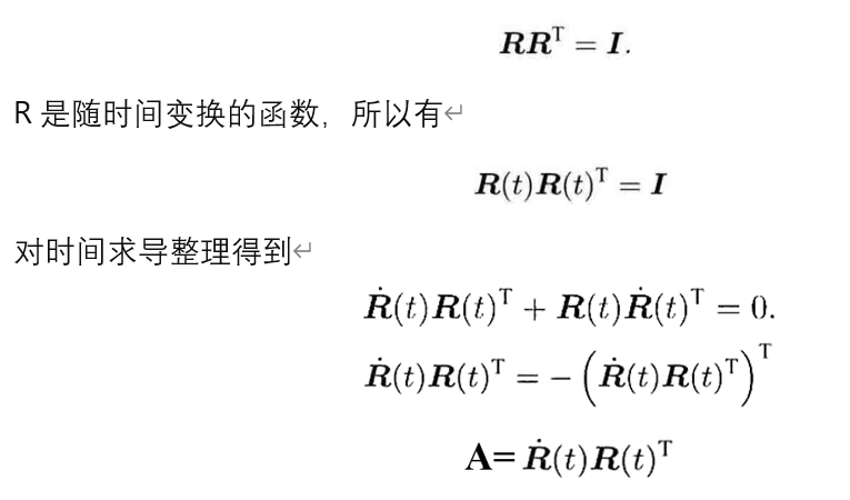 则A是一个反对称矩阵,对于任意的反对称矩阵,存在对应的唯一向量,该向量被称为反对称矩阵的旋转向量或轴向量。所以可以找到一个三维向量与之对应