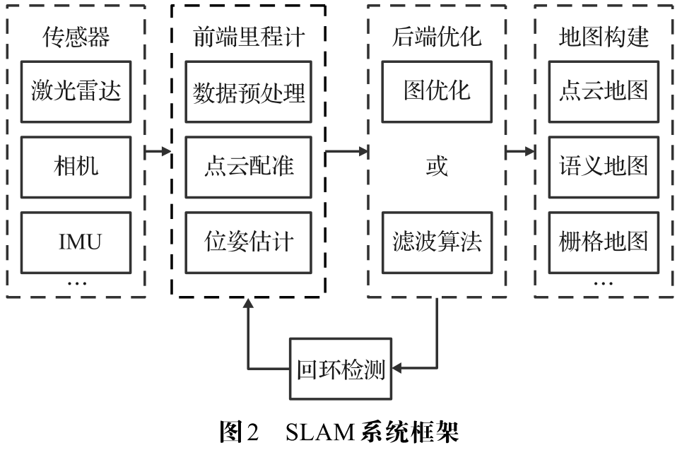 传感器数据采集处理、前端里程计、后端优化、回环检测和地图构建。<div align=center><img src="https://oss.guyuehome.com/Uploads/Editor/202405/20240517_37337.png" width = 40% height = 30%> </div>